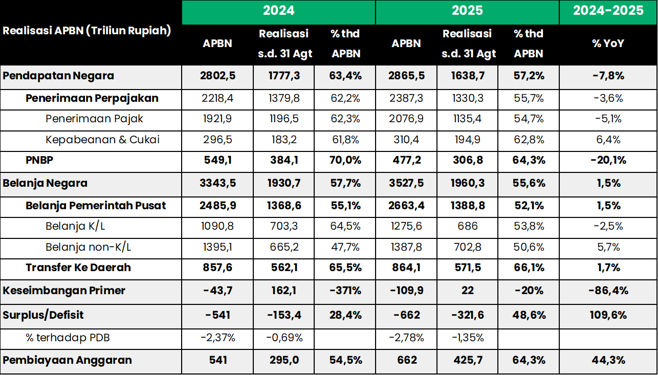 💸 Realisasi APBN 8M25: Penerimaan Pajak Masih Lemah, Belanja Terakselerasi