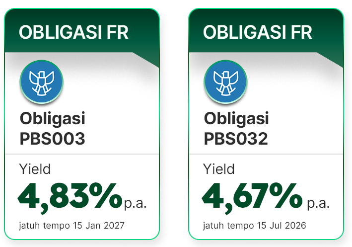 - Ini jadi peluang untuk kunci yield Obligasi FR. Kunci kepastian return dengan tenor jangka pendek hingga 2 tahun.