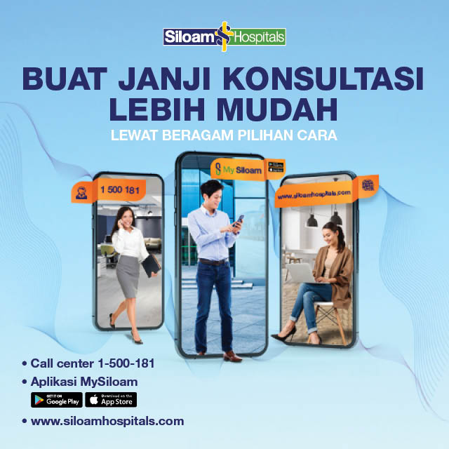 Temukan kemudahan lewat tiga pilihan cara ini: ● Hubungi call center 1-500-181 ● Daftar melalui aplikasi MySiloam ● Kunjungi www.siloamhospitals.com |