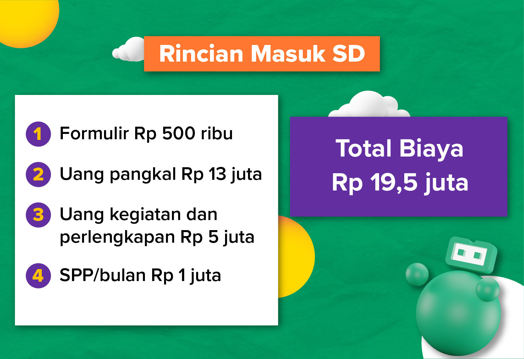 Berdasarkan catatan dari beberapa sumber, rata-rata uang pangkal sekolah di Indonesia naik mencapai 10-20% per tahun. Padahal, nggak cuma uang pangkal, biaya-biaya lainnya juga akan menyesuaikan.