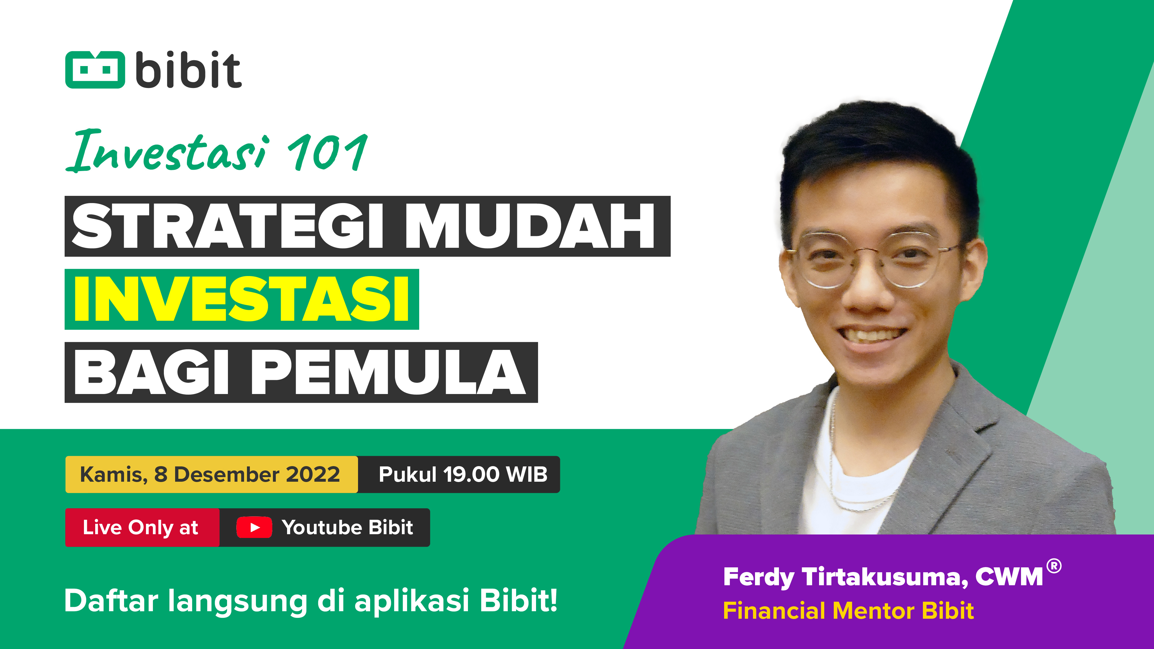 Selamat buat kamu yang sudah memutuskan berinvestasi! Sekarang, asah pengetahuan kamu seputar investasi melalui kelas Bibit "Investasi 101: Strategi Mudah Investasi bagi Pemula". Kelas ini akan menjawab pertanyaan kamu, khususnya buat kamu investor pemula. Di antaranya adalah terkait mindset berinvestasi, tempat yang pas untuk berinvestasi, serta bagaimana strategi yang bisa teman-teman gunakan untuk mulai berinvestasi. |