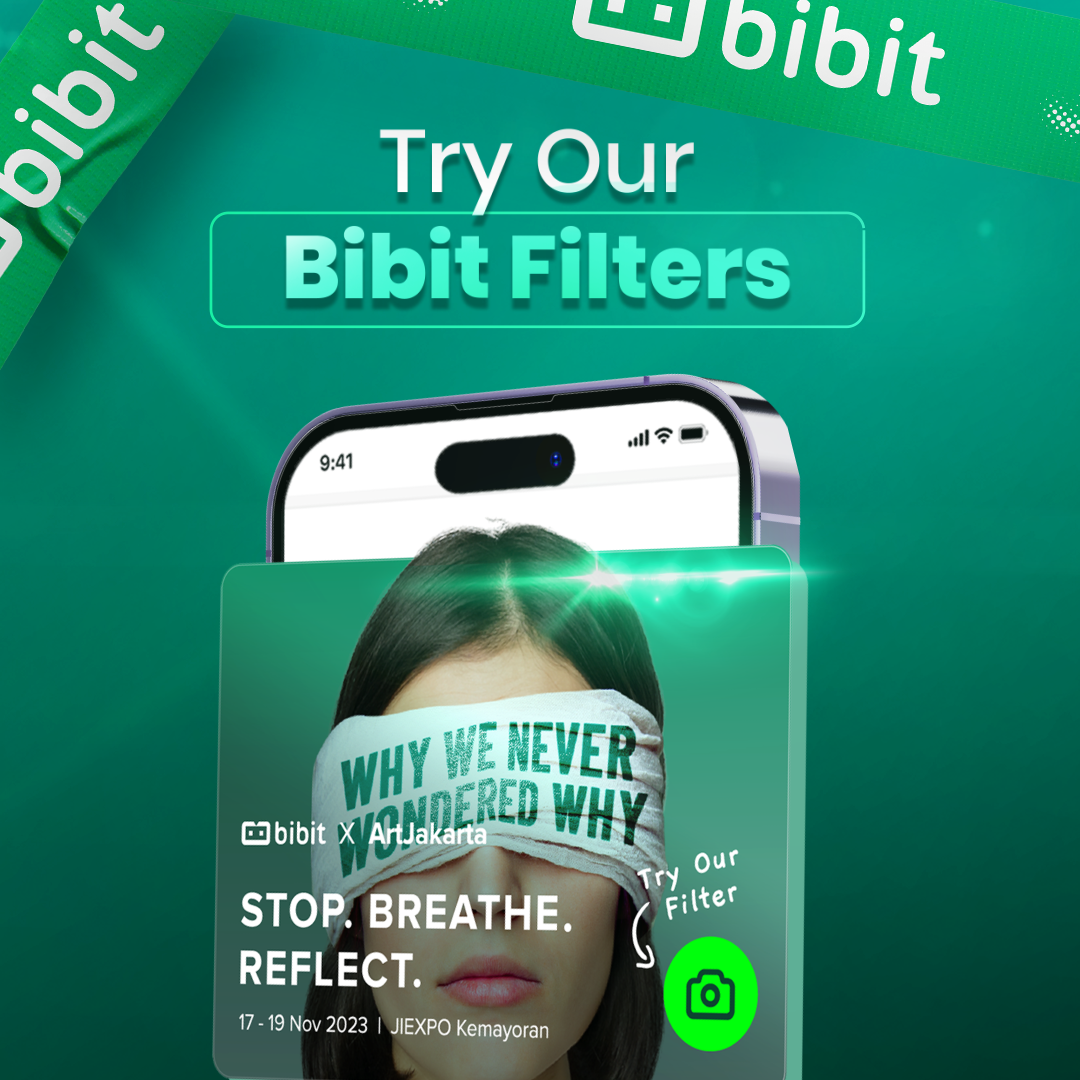 Sambil menunggu dimulainya Art Jakarta. Kamu bisa mencoba shareable filter Bibit X Art Jakarta di halaman utama aplikasi Bibit yang terinspirasi dari "Memory Mirror Palace". |