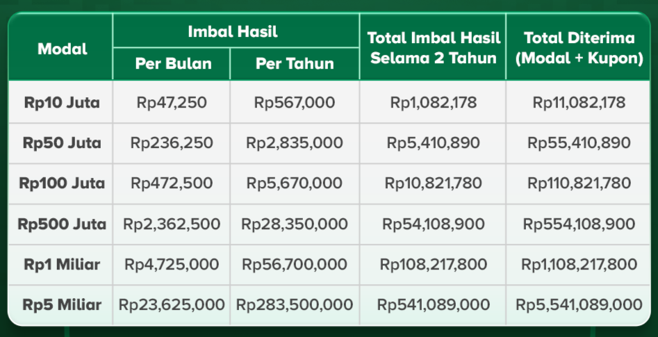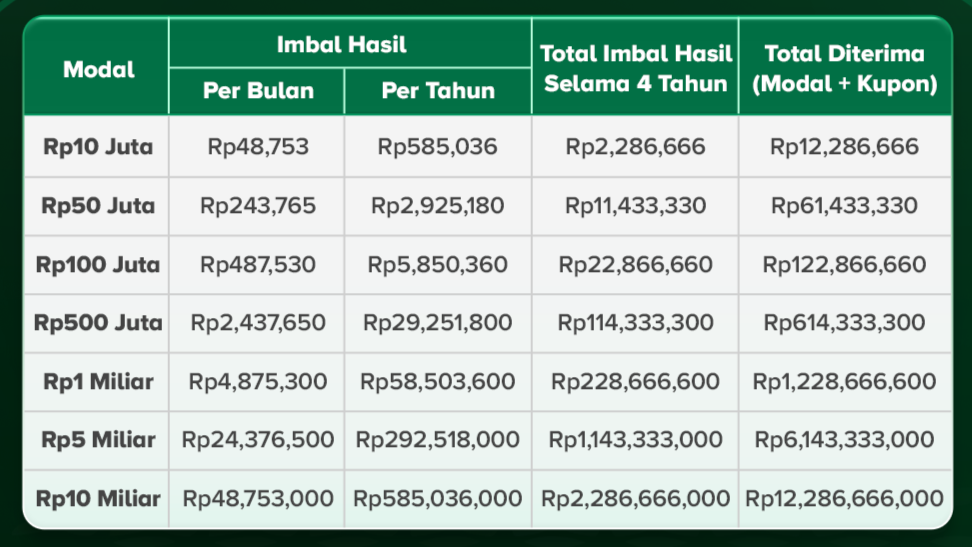 Simulasi Passive Income ST011-T4 Minimal 6,50% per Tahun | |
