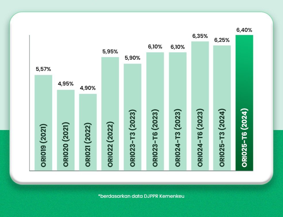 - ORI025-T6: tenor 6 tahun dengan imbal hasil 6,40% per tahun