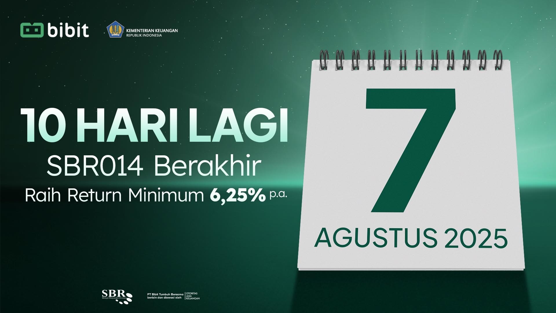 SBR014 memiliki floating with floor return yang masih bisa naik jika suku bunga BI naik. Namun jika suku bunga BI dipangkas, investor tidak perlu khawatir sebab return anti turun dari batas minimumnya (6,25% p.a. tenor 2 tahun & 6,35% tenor 4 tahun). Per 28 Juli 2025 pukul 15.00 WIB, SBR014 sudah terjual Rp5,5 triliun. SBR014-T2 menjadi tipe tenor yang paling diminati investor dan terjual Rp4,3 triliun. Saat ini, kuota SBR014-T2 tersisa ~55%. Segera amankan return yang masih menarik dari SBR014, bisa dibeli di Bibit hanya sampai 7 Agustus 2025 pukul 10.00 WIB. |