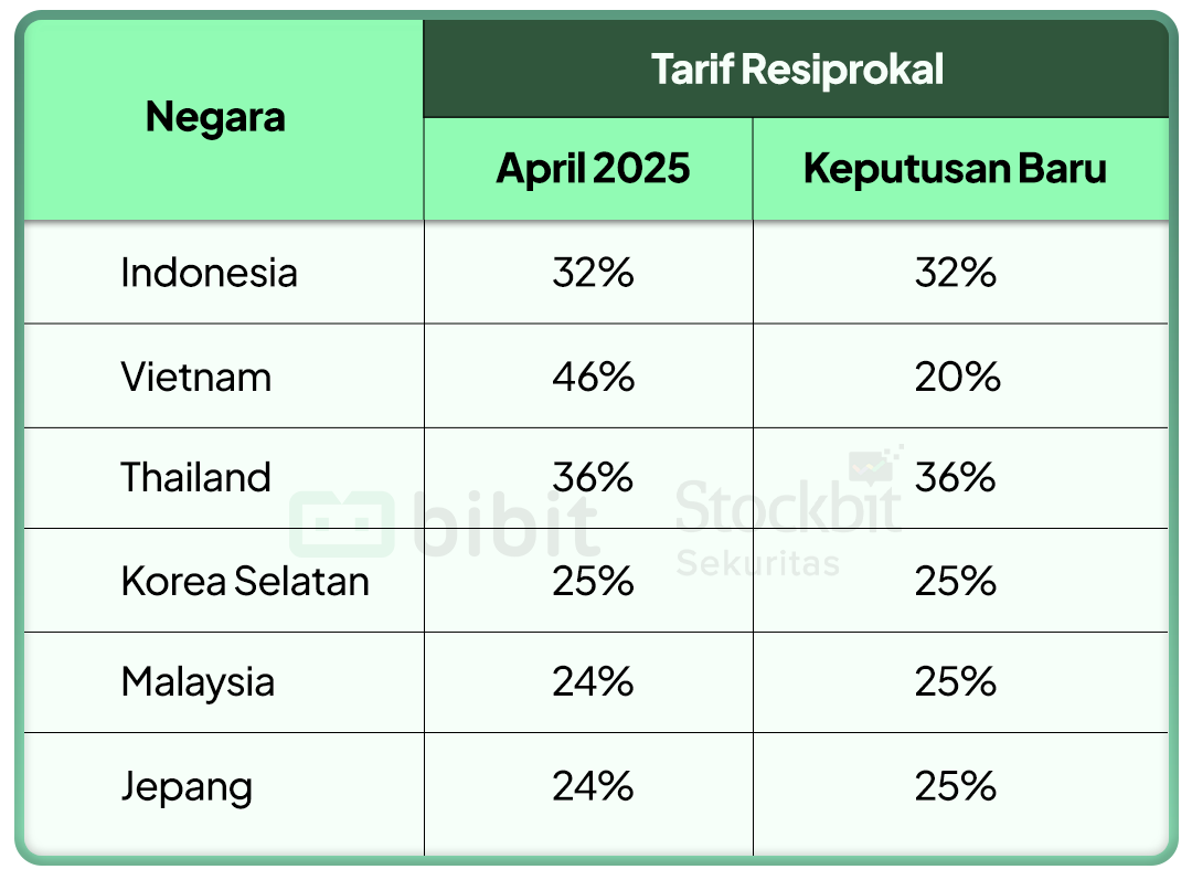Disclaimer: Tarif pada tabel mengacu pada keputusan 7 Juli 2025 (waktu AS) dan berlaku mulai 1 Agustus 2025. Masih dapat berubah sesuai hasil negosiasi. |