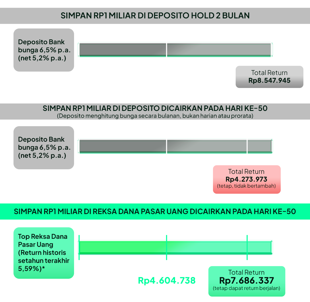 Simulasi Return Reksa Dana Pasar Uang dibandingkan Deposito Jika Dana Ditarik Sewaktu-Waktu |