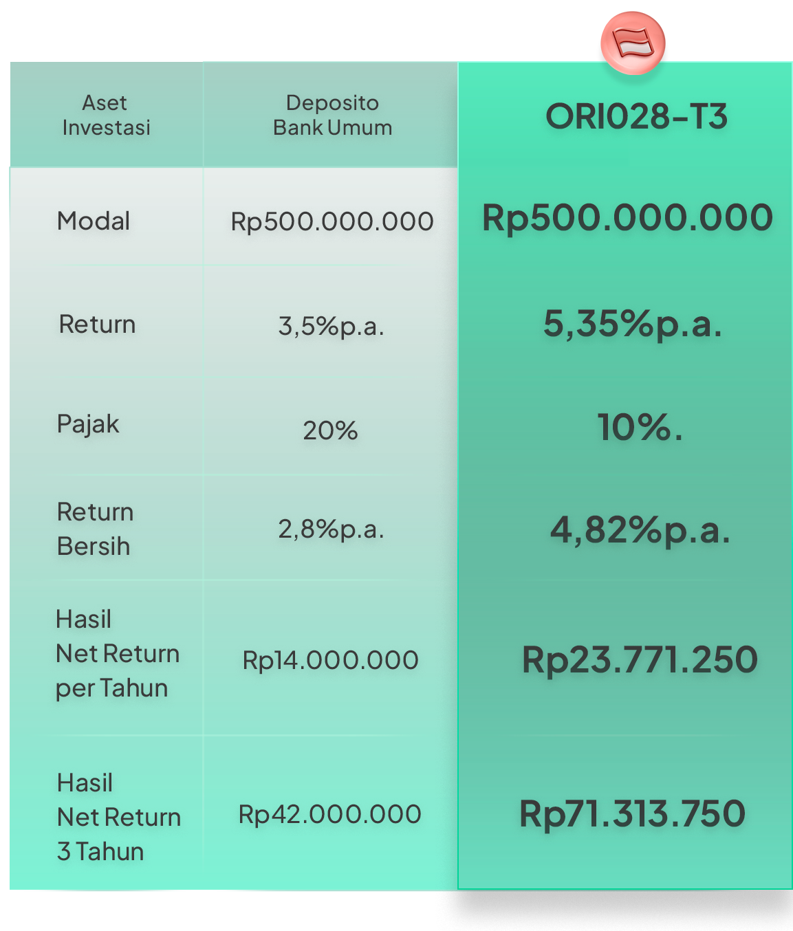 NET RETURN ORI028 LEBIH TINGGI 72% DARI BUNGA DEPOSITO BANK UMUM YANG DIJAMIN LPS |