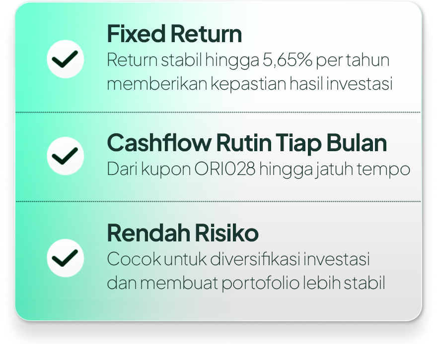 - ORI028-T6: tenor 6 tahun dengan imbal hasil fixed rate 5,65% per tahun