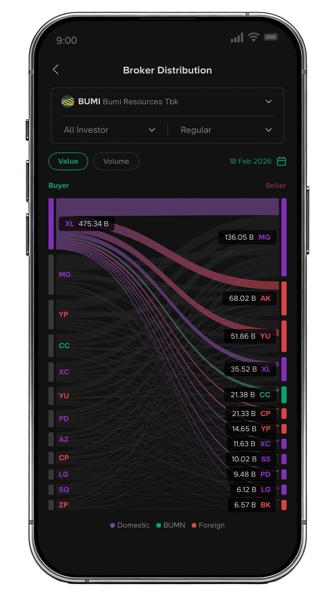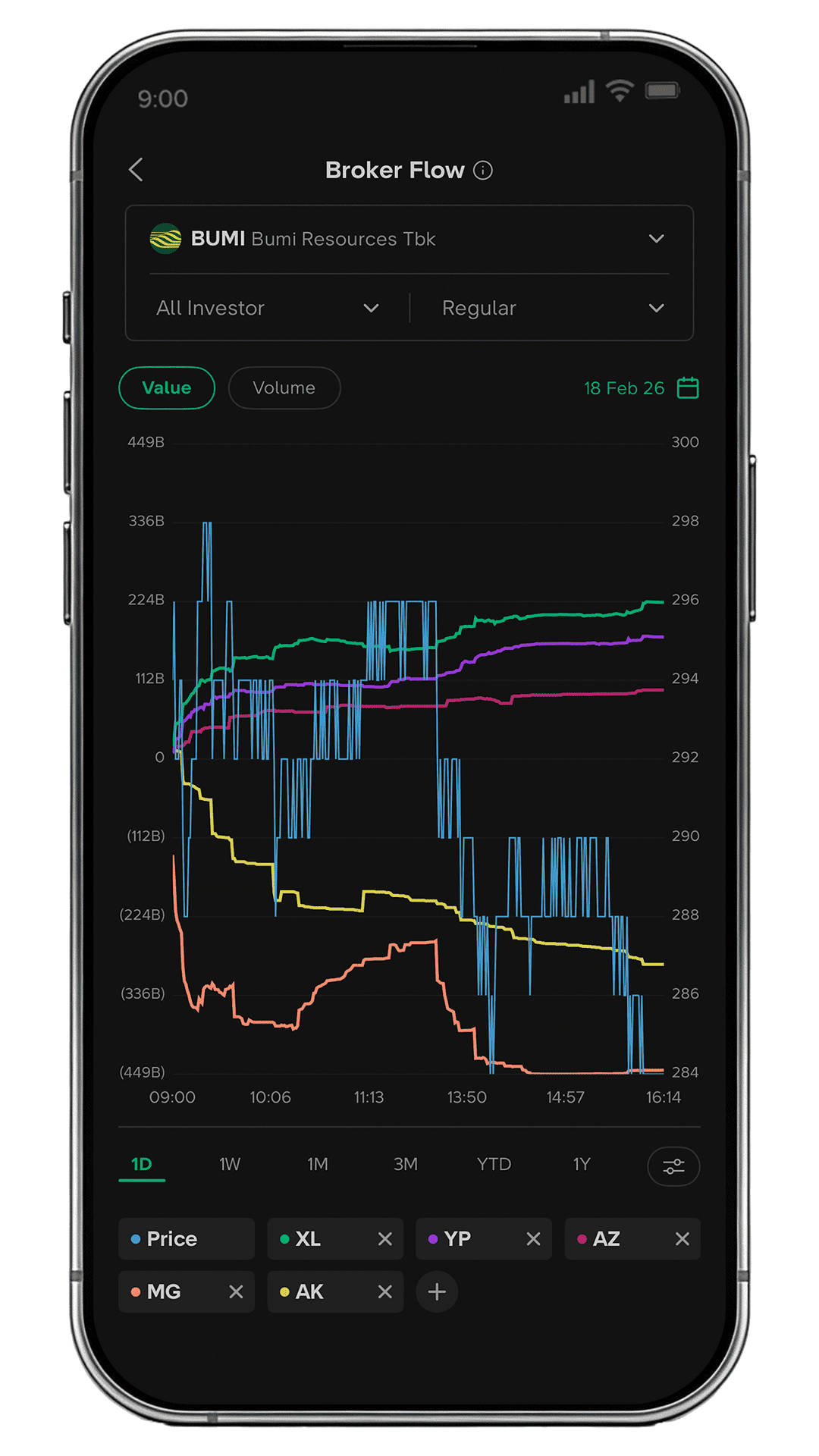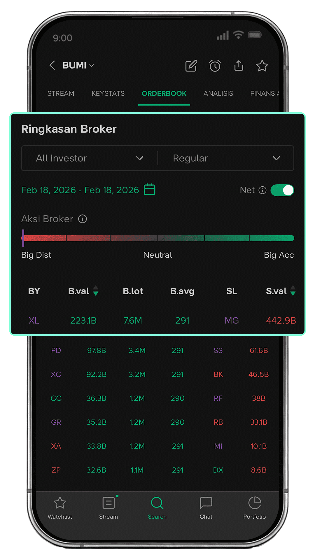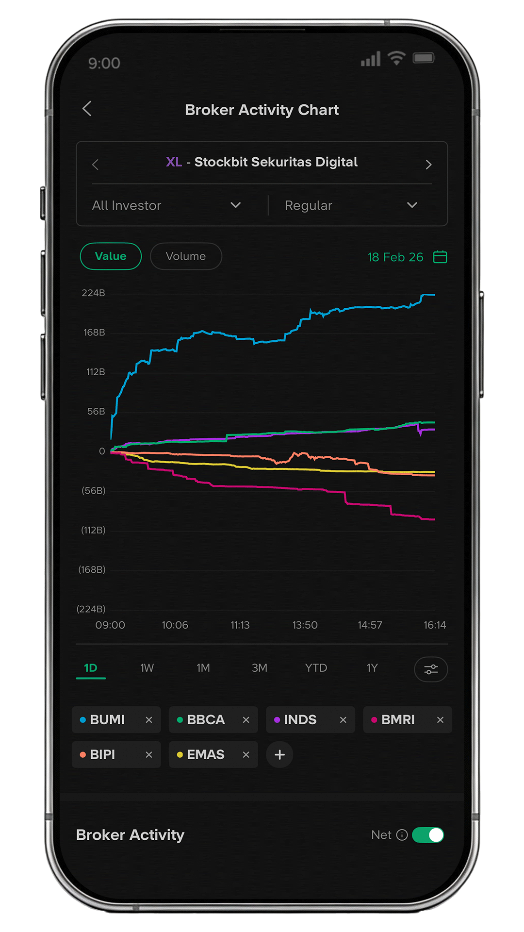 - Dapat dilihat secara Gross, atau Net untuk melihat pola akumulasi/distribusi.